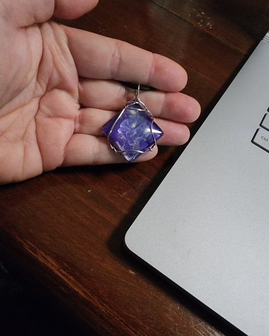 Shimmering Diamond-Shaped Blue and Purple Pendent