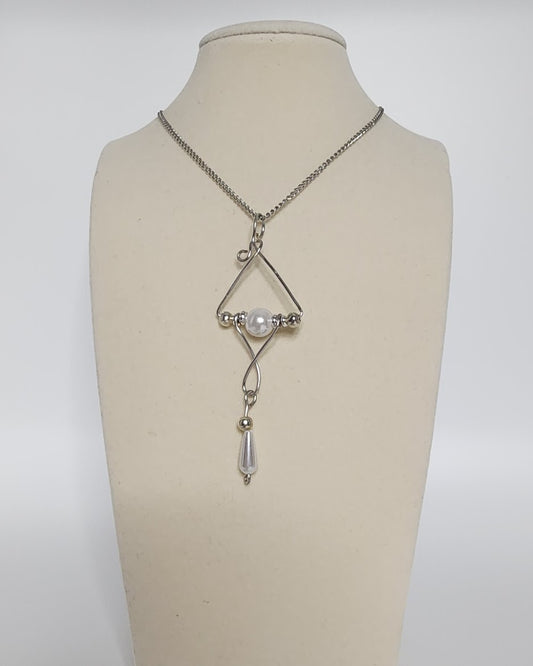 Geometric Pearl Pendant - Handmade Art Deco Inspired